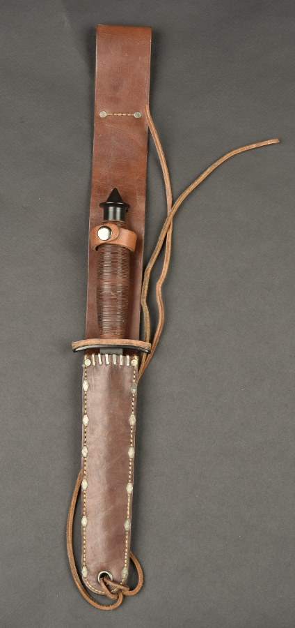 Couteau USM5. Manche en bakélite noire. Pommeau oxydé. Garde Marquée..