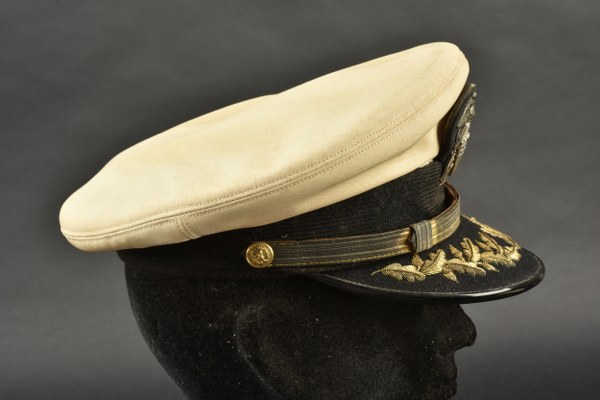 Casquette d'officier de l'US Navy. Coiffe en tissu imperméabilisé blanc...