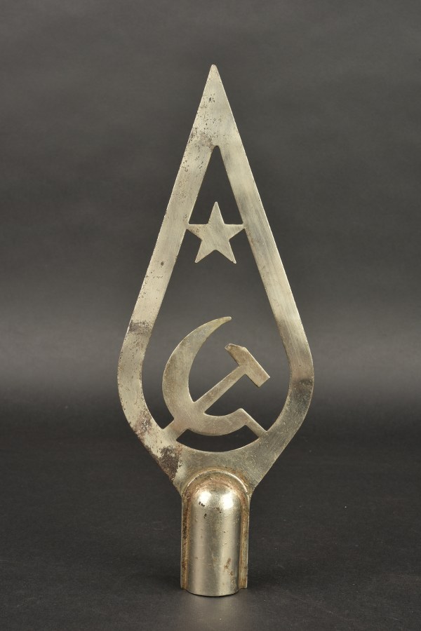 Pointe de drapeau russe. En métal, couleur argenté à 70%...