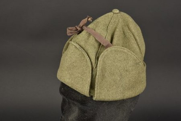 Bonnet canadien. En épais drap kaki. Jugulaire en toile maintenant..