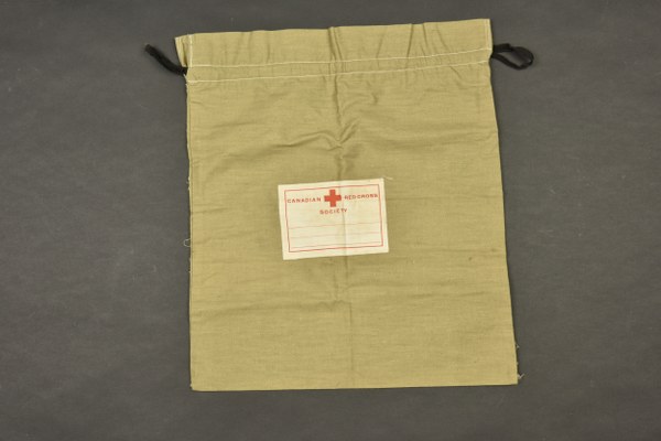 Sac Canadian Red Cross. En forte toile kaki, les cordons..