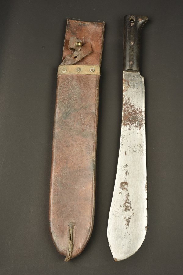 Machette US canadienne. Fourreau en cuir marron. Fabrication Robco LTD..