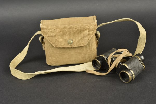 Jumelles britannique. Housse en épaisse toile web. Bouton pression complet...
