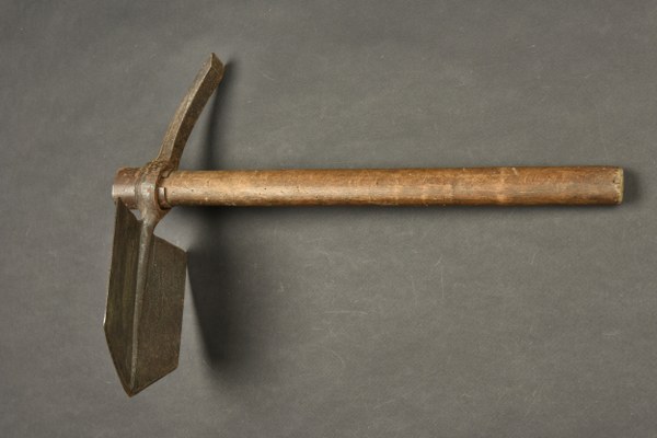 Outil individuel britannique. Manche en bois présentant quelques traces de..