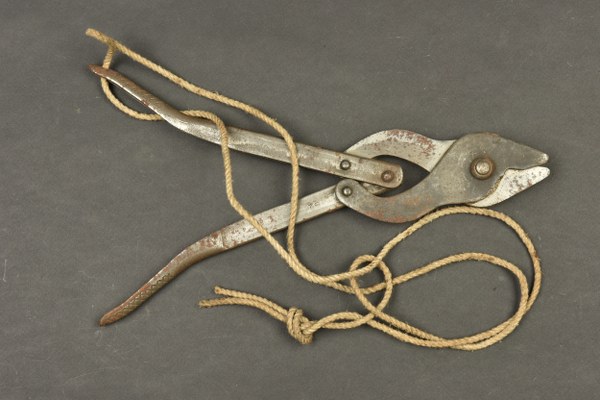 Pince britannique. En métal, et articulée, présentant quelques traces d'oxydation...
