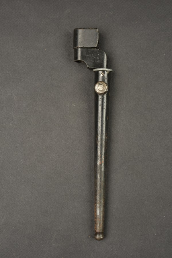 Baïonnette clou. Baïonnette et fourreau en métal, belle couleur noire..
