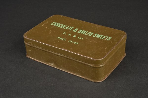 Boite de bombons britannique. En métal, vide. Couvercle complet. Ouverte...