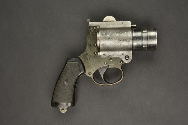 Pistolet lance fusée britannique. En métal, fortement nettoyé. Couleur noire..