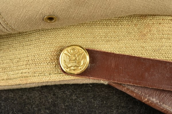 Casquette d'officier US. En tissu chino. Visière en cuir souple...