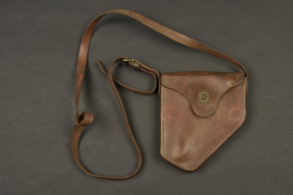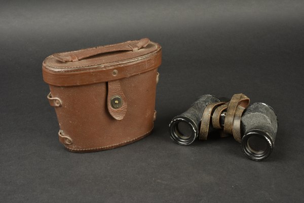 Jumelles US. Housse en simili cuir marron. Bouton pression fonctionnel...