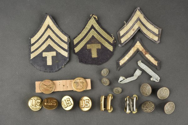 Insignes US. Comprenant huit modèles différents de boutons d'uniforme US...