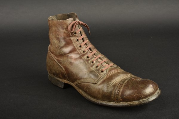 Brodequin US. Un seul brodequin en cuir marron lise. Bout..
