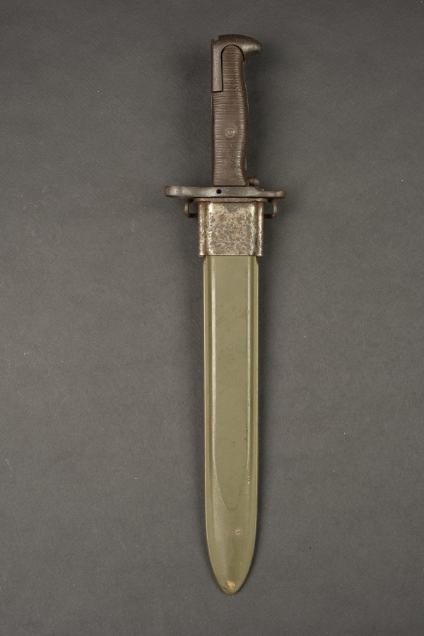 Baïonnette de Garand. Modèle courte. Plaquettes en bakélite. Les garnitures..