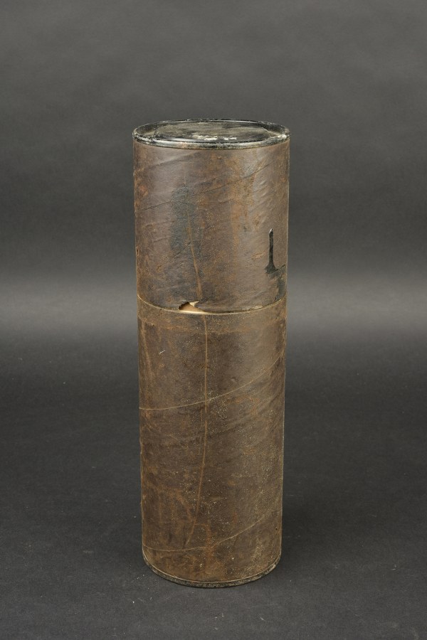 Container à obus US. En épais carton noir. Le couvercle..