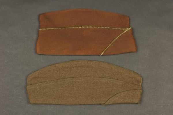 Calots US. Comprenant un calot en drap marron, liseré vert..