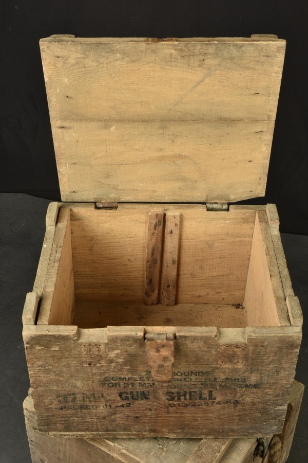 Caisses à munition US. Comprenant une caisse en bois, les..