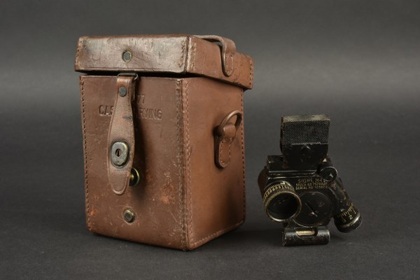 Optique de mortier US. Housse en épais cuir marron. La..