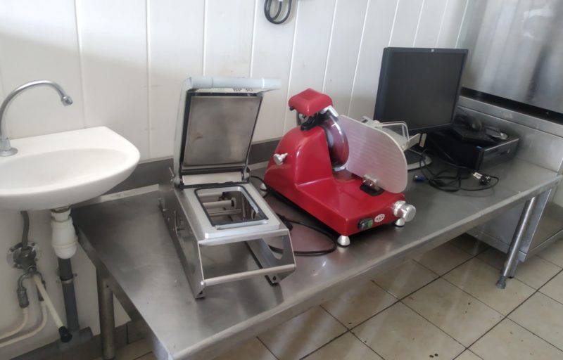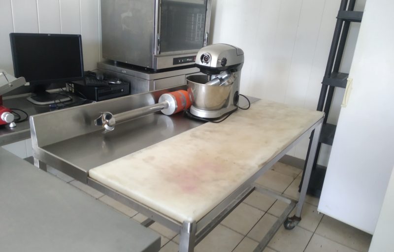 Suite à liquidation judiciaire d’un traiteur : vente aux enchères de matériels de cuisine comprenant armoire réfrigérée positive à 2 portes PENINOS, four à air pulsé WEKA, cellule de refroidissement, armoire réfrigérée, gazinière à 4 feux ZANUSSI, 3 tables inox dont 2 à dosseret, trancheuse à jambon, placard inox, plonge deux bacs en inox, centrale de désinfection, mixeur,….