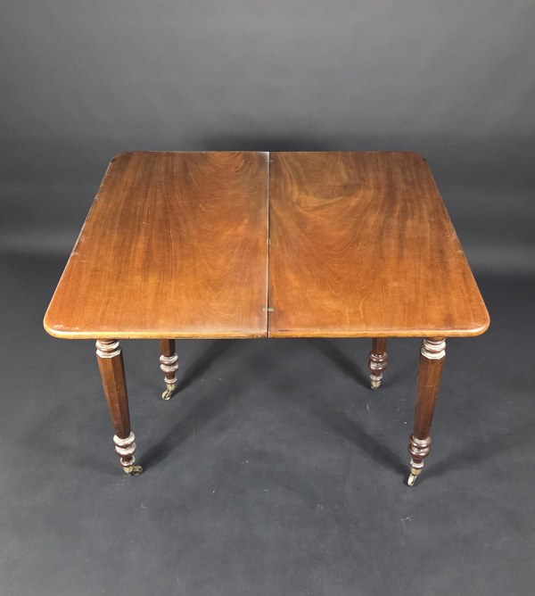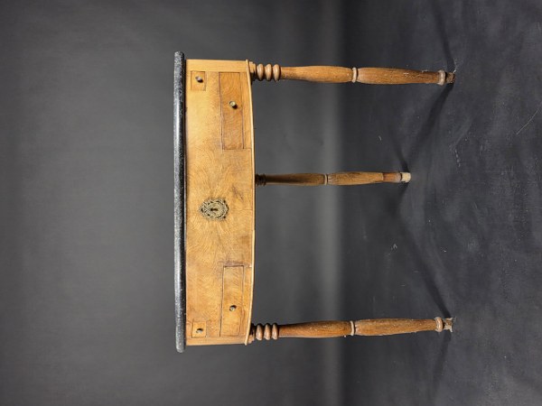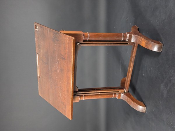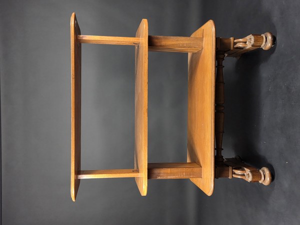 Table en bois naturel à plateau portefeuille.Elle repose sur quatre..