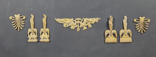 Eléments d'ornementation en bronze représentant des draperies tombantes, palmettes et..