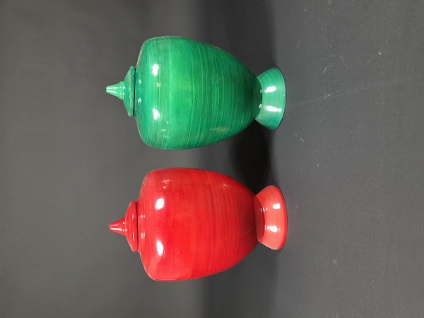 Deux vases en bois tourné pouvant former urne funéraire, de..