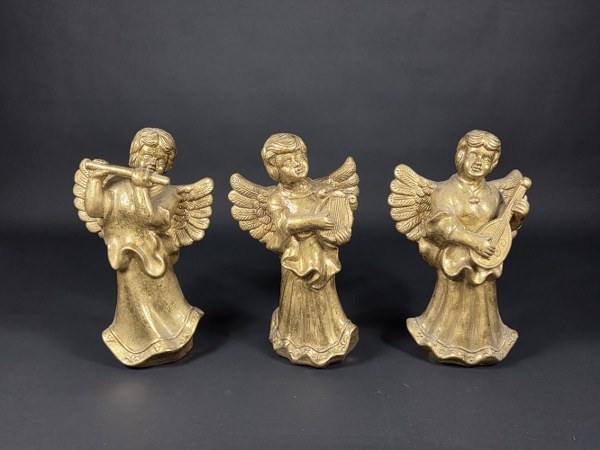 Trois anges musiciens en céramique doré comprenant un joueur de..