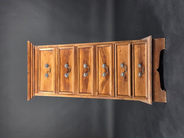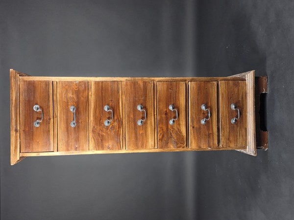 Chiffonnier de forme trapézoïdal ouvrant à six tiroirs en façade...