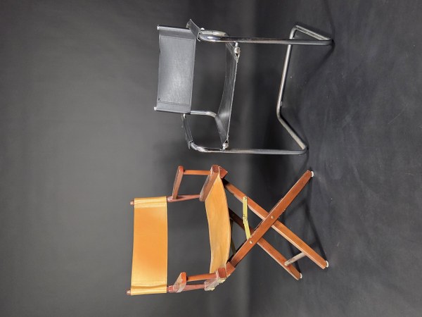 Ensemble de deux fauteuils l'un à structure métallique garnie de..