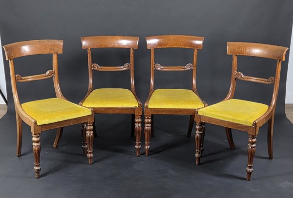 Ensemble de quatre chaises en acajou mouluré et sculpté recouverts..