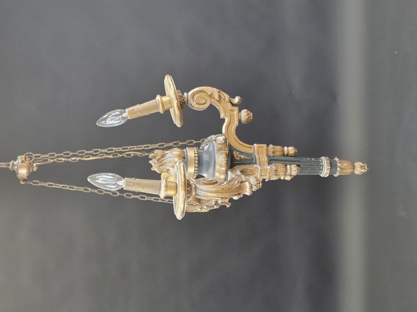 Lustre de style Louis XVI en bois mouluré et sculpté..