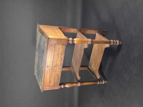 Coiffeuse en acajou simulant trois tiroirs en façade. Elle ouvre..