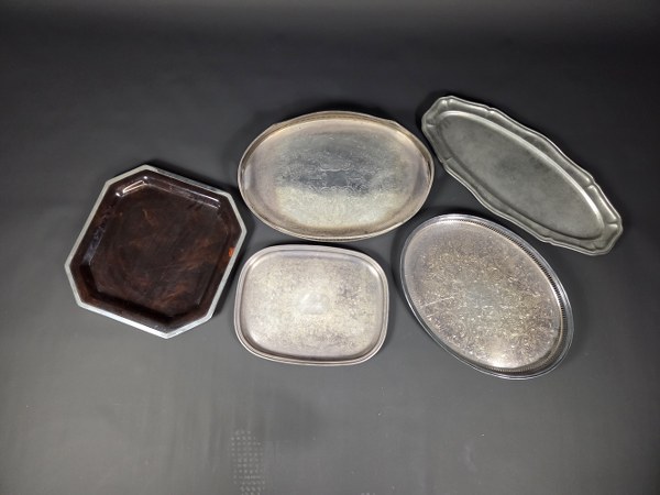 Lot de platerie comprenant cinq plateaux dont un plat à..