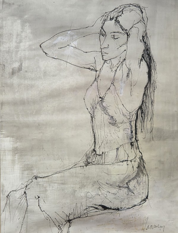 Marie-Antoinette BOULLARD-DEVE (1890 -1970). Portrait d'une femme assise en tailleur..