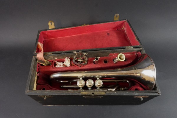 Boîte en bois noirci et laiton. Epoque Napoléon III. Accidents.