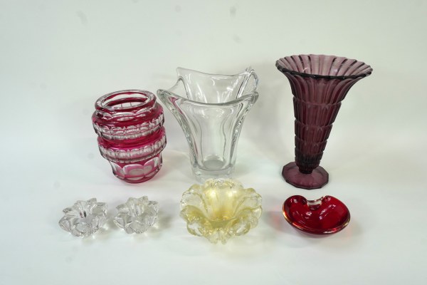 Ensemble de trois vases, une coupelle, un vide-poche et deux..