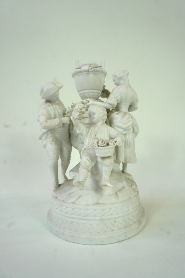 Groupe en biscuit figurant un couple et un enfant tenant..