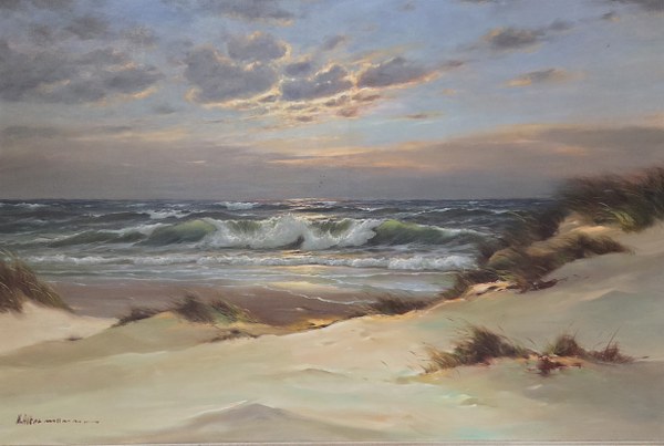 Horst ALTERMANN (1925-1978) . Crépuscule en bord de mer. Huile..