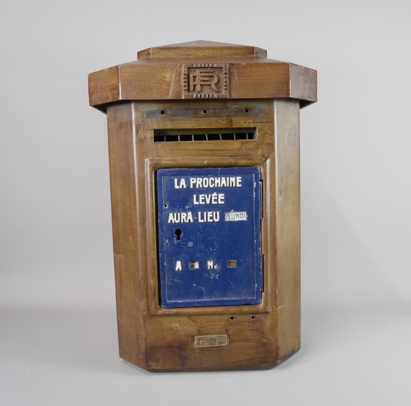 Boîte aux lettres métallique. Elle ouvre par une porte qui..