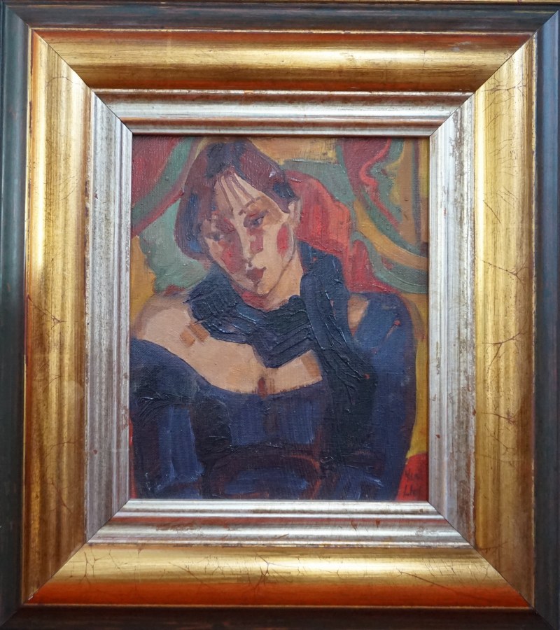 Maria LLUIS (née en 1931). Portrait de femme. Huile sur..