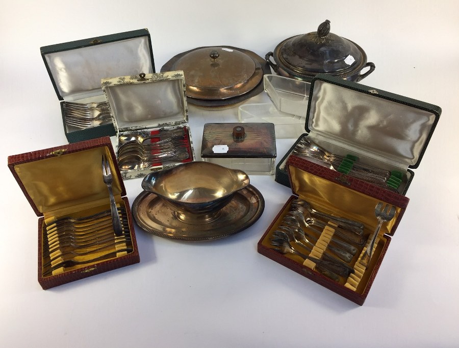 Lot de couverts en métal argenté dans plusieurs écrins, 2..