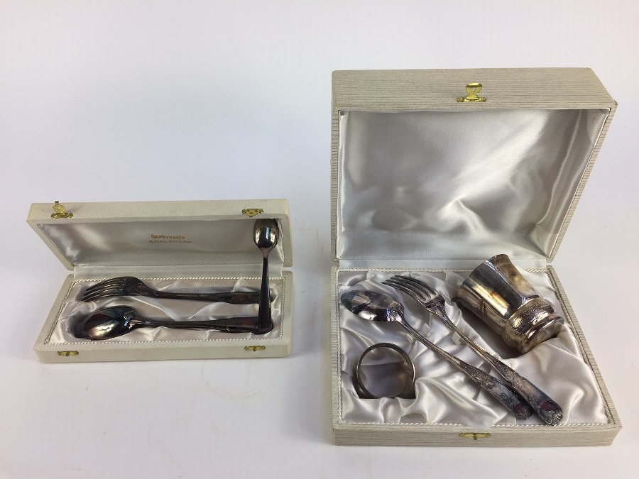 Deux coffrets de couverts pour bapteme en métal argenté.
