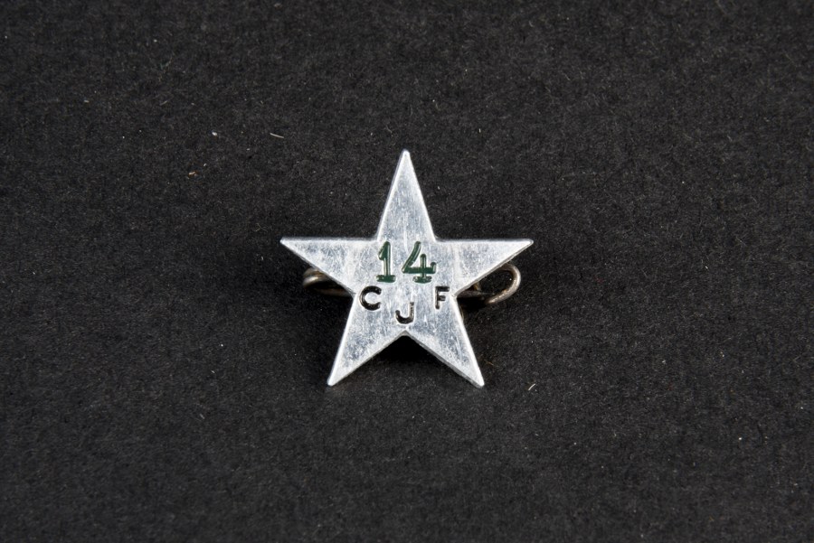 Un insigne du Groupement 14 en aluminium peint du Groupe..