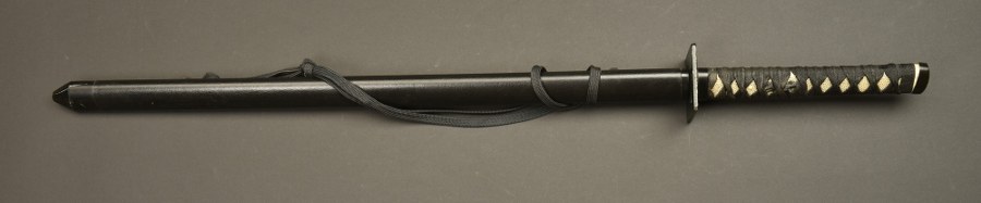 Katana. Poignée en simili galuchat. Laçage noir croisé sur la..