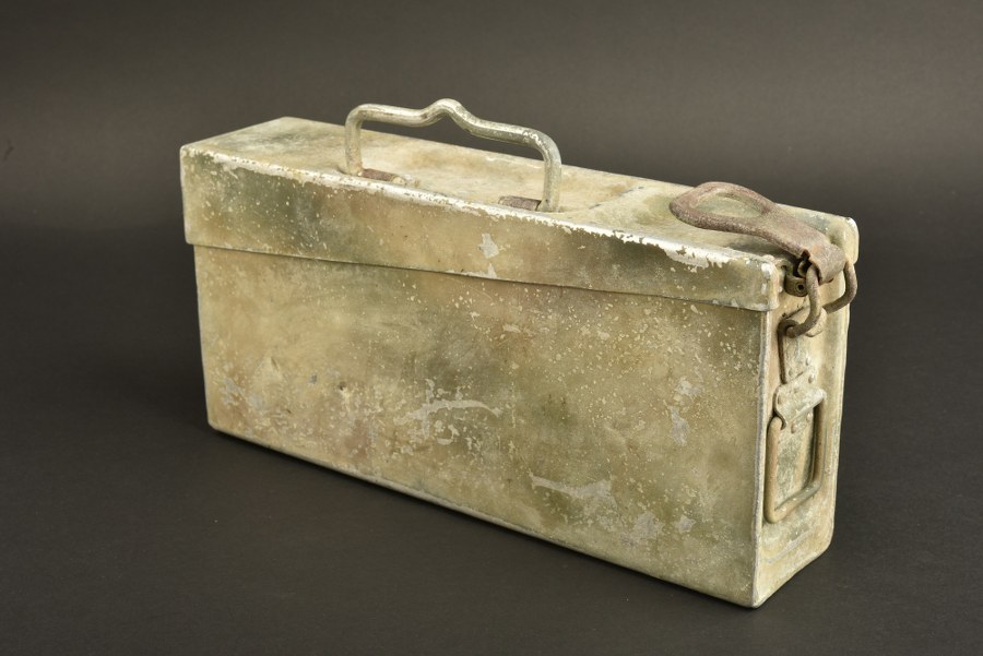 Caisse MG camouflée. Modèle en aluminium. Toutes les fermetures sont..
