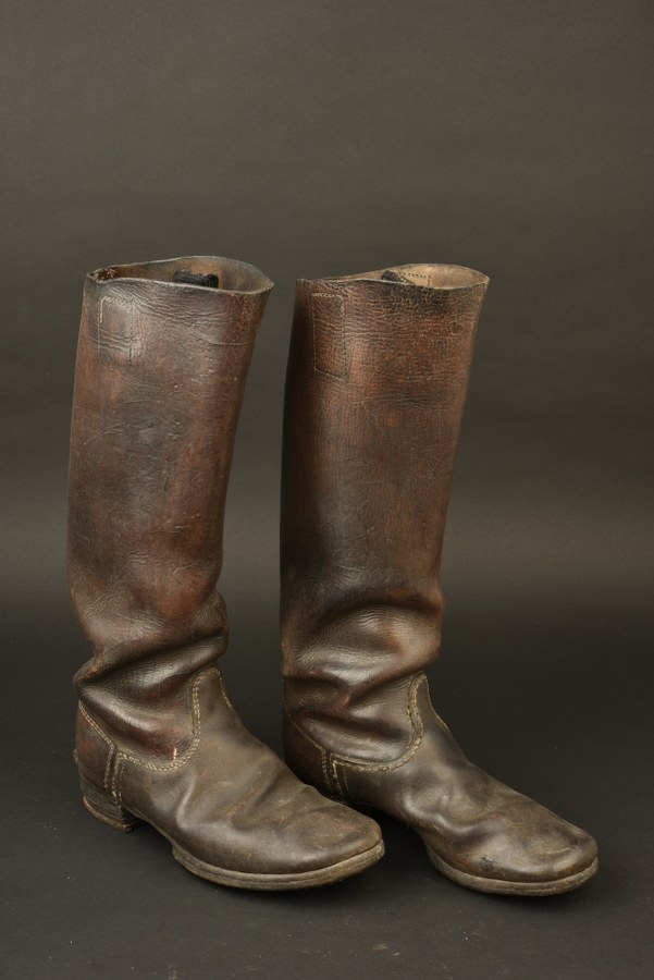 Bottes de cavalerie allemande. Tiges hautes, en cuir marron. Paire..