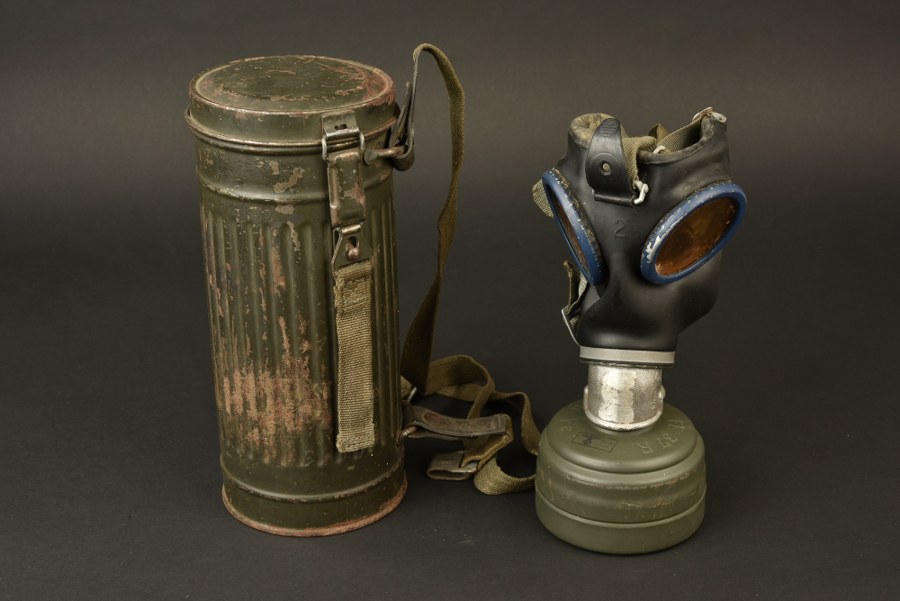 Masque anti-gaz allemand. Boitier long. Peinture Feldgrau à 60%. Toutes..