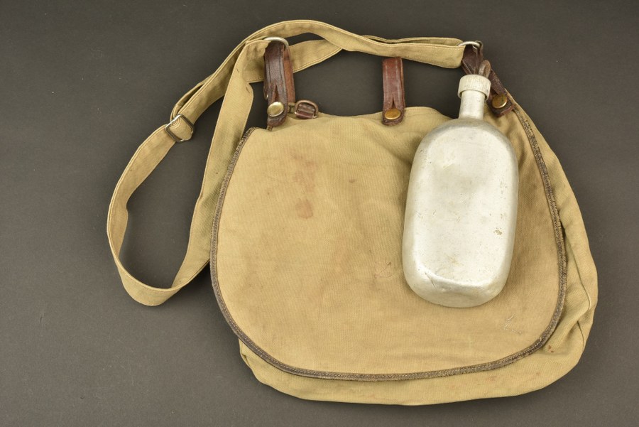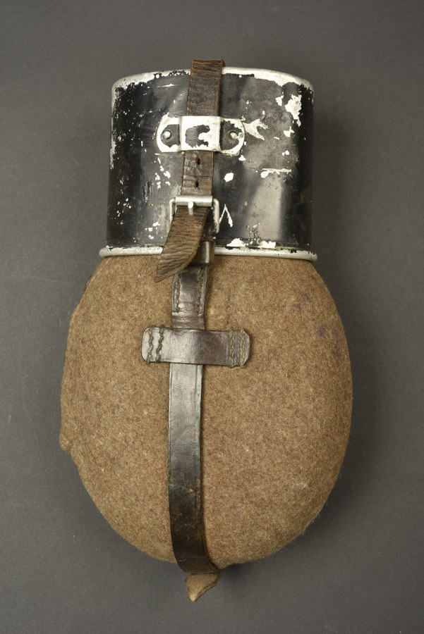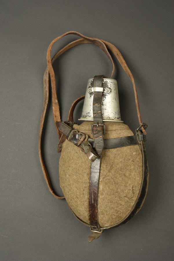Gourde allemande. Gourde en aluminium, fabrication VAL 39. Housse en..