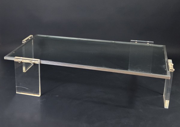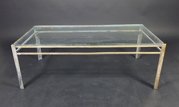 Grande table basse rectangulaire à plateau en verre enchâssé dans..