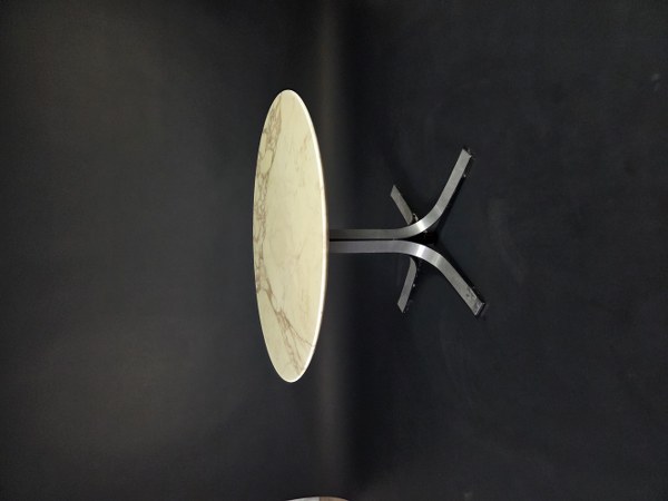 Table basse à piétement cruciforme en métal brossé et laqué,..