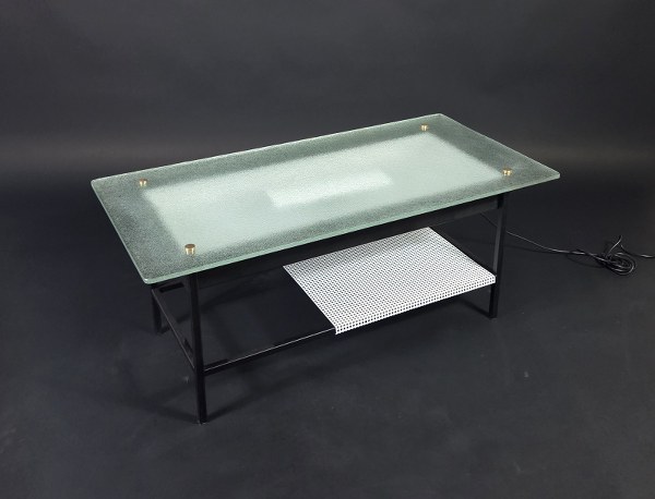 Robert MATHIEU (1921-2012). Table basse lumineuse, piétement tubulaire carré laqué..